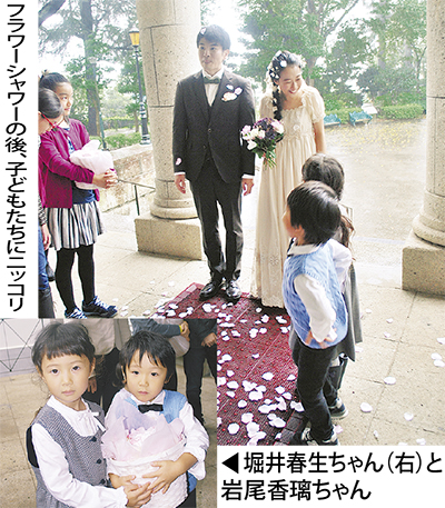 なおフラワーシャワーには、記念館初の挙式ということで、大倉山の地域住民らもお祝いにかけつけ、参加した堀井春生ちゃん(5歳)、岩尾香璃ちゃん(4歳)は、「お嫁さんかわいかった!」「お婿さんもかっこよかった!」など感想を聞かせてくれた。