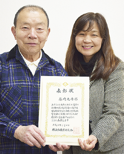 大豆戸町在住の篠崎元彦さんは4日、平成29年度横浜市教育委員会表彰を横浜サイエンスフロンティア高等学校で受けた。