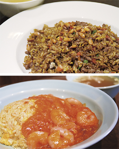 綱島桃栄会からは『中国料理 珠鴻(しゅうこう)』の「エビチリあんかけチャーハン」(税込950円)が名乗りを上げた。綱島の地で40年以上愛され続けている同店の店主が、カニあんかけ、肉あんかけと並んで”あんかけ三兄弟”との愛称で呼ぶほど人気の逸品だ。調理はオーソドックスなたまごチャーハンと同じ工程だが通常よりも塩を少なめにし、その代わりに刻まれたザーサイをアクセントで入れている。その上にエビのチリソースがかけられ、絶妙な味のバランスとなっている。「あんかけ三兄弟を食べにきてください」と店主。