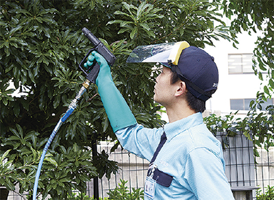 庭木の施肥から病害虫防除まで年7回、約7週間おきに専門知識を持ったスタッフが定期管理するダスキンの「樹木のお手入れサービス」。施肥から病害虫対策、土壌活性など季節に合わせたお手入れで庭木をいきいき美しく保ってくれる。