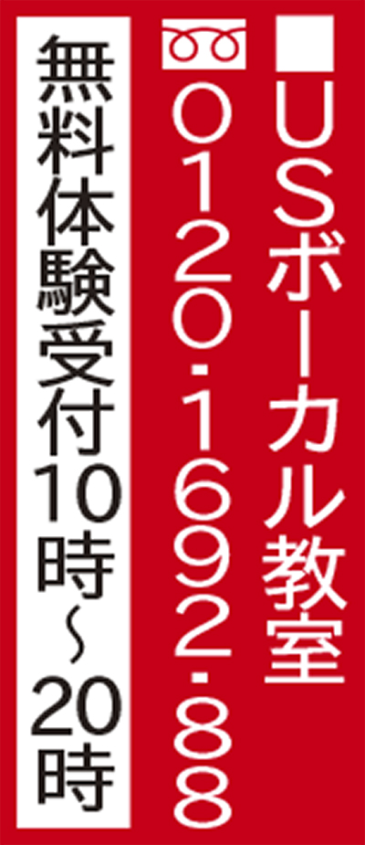 「歌がうまい人は才能がある」「音痴で恥ずかしい」と歌うことを諦めていませんか?USボーカル教室では、そんな歌わず嫌いも、本格的かつ楽しいレッスンで「歌える、楽しい!」に変身。幅広い世代が声の違いを実感している。まずは始めるきっかけに、30分無料体験へ!