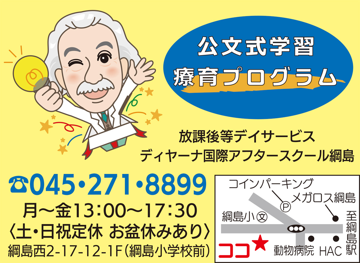 なお同事業所では横浜市内で初めて公文式学習療育プログラムを取り入れており、スモールステップで自己肯定感を高める療育を行っている。平成30年度の利用希望者は見学随時受付中。