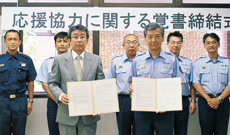 「横浜市内は、現在震度6以上の地震発生率が高いとされる。民間レベルでの協力が非常に力になる」と同社の協力に感謝の意を述べた。同社の岸田祐一代表取締役は「弊社で区内すべての同業者との覚書が締結されたと思う。糸井川の件は、業界内でも有名な話で、ぜひ協力したいと考えていた」と応えた。