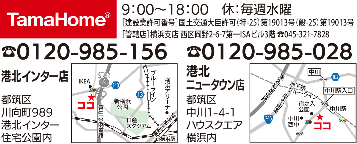 港北インター店:横浜市都筑区川向町989 港北ニュータウン店:横浜市都筑区中川1の4の1