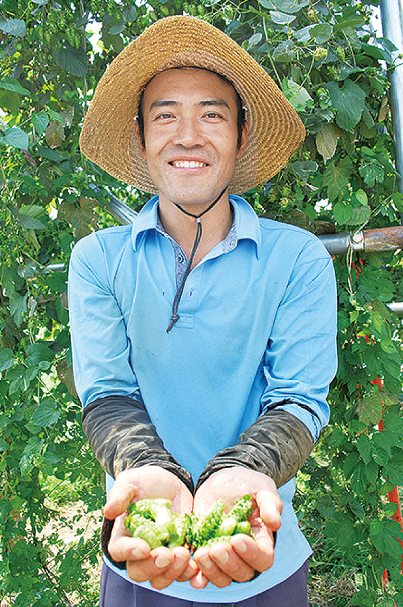 昨年、地元産のホップを使った初の横浜産地ビールづくりに使用されたのが、高田町の古川原農園で栽培された「横浜産ホップ」。