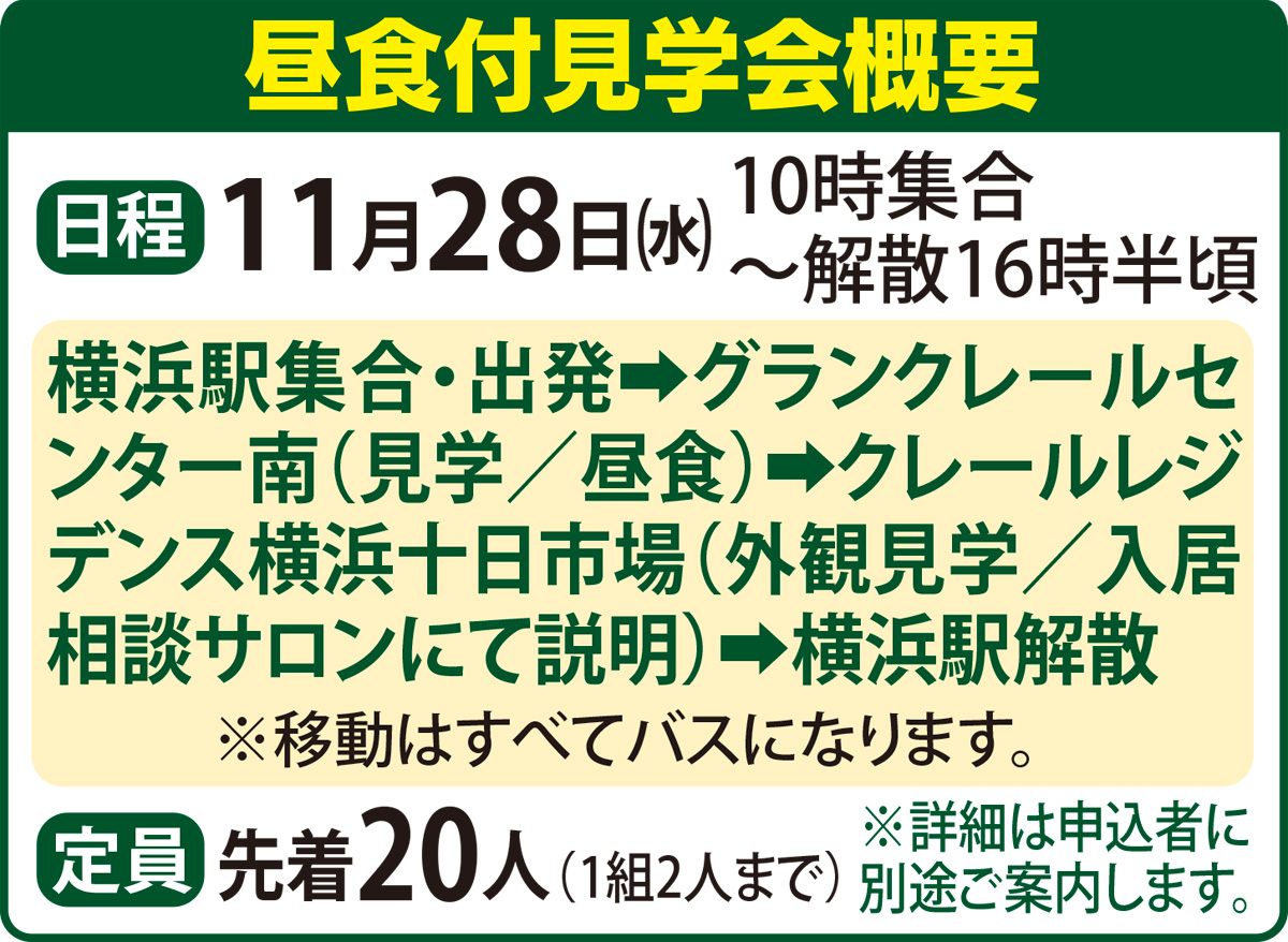 見学会は人生を謳歌したい元気なシニアが対象。1人でも、家族と一緒の参加でも歓迎。無料なので気軽に下記まで申込を。