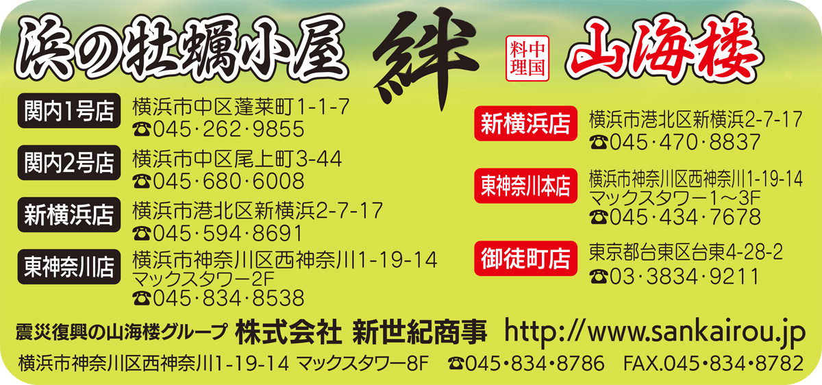 震災復興支援を続ける中華料理店「山海楼」(新横浜店・東神奈川店)と「浜の牡蠣小屋」(関内1、2号店・新横浜店・東神奈川店)がこのほど、「忘・新年会プラン」のメニューを発表した。