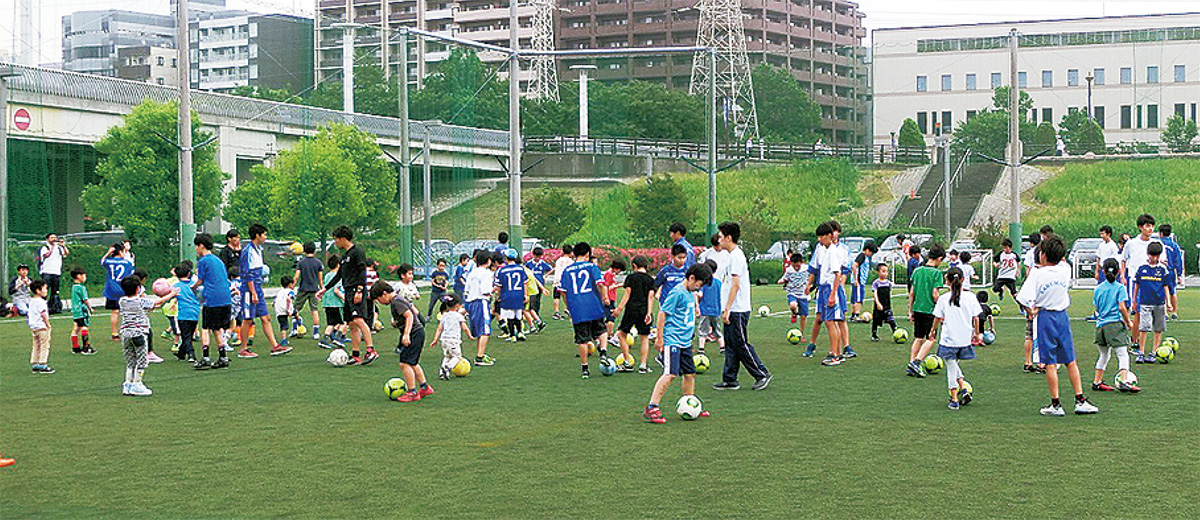 一つ目は2015年から継続している「横浜こどもスポーツふれあいDAY」。これは「横浜こどもスポーツ基金」を活用した事業で、市立小中学校の個別支援学級、市立特別支援学校に通う障がいのある児童生徒らをサッカー観戦に招待するというもの。それに加え18年度は、初めて試合前にサッカー教室も実施。ボランティアとして、(一社)横浜すぱいすのメンバーや区内中学校のサッカー部員らにも協力を仰ぎ、障がい児らにサッカーを体験してもらったという。