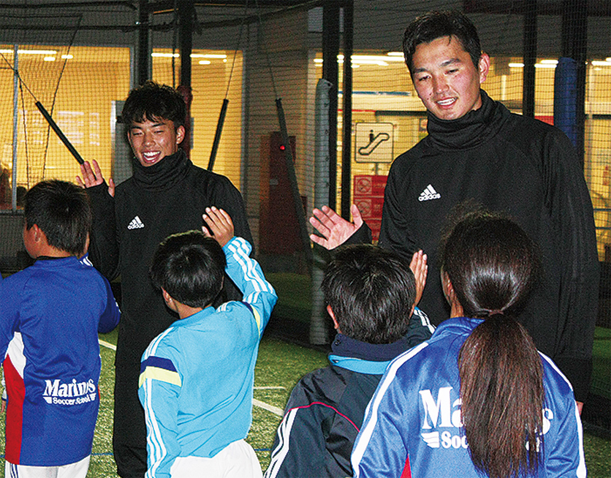 横浜F・マリノスの2選手が12月12日、マリノスサッカースクール新吉田校にサプライズ訪問した。