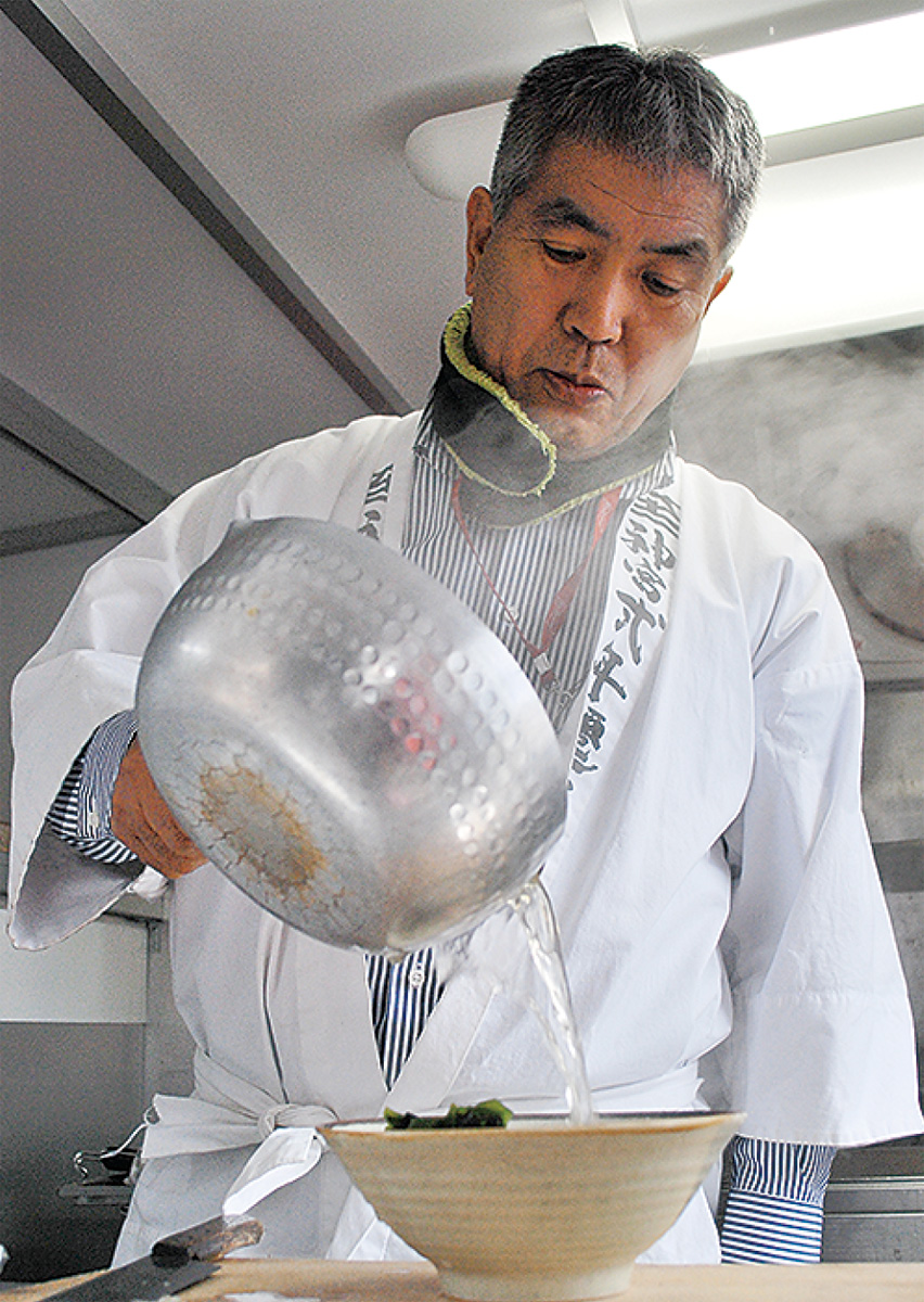 菊名駅東口徒歩3分の「菊名神社(菊名6の5の14)」。初詣や節分、七五三、秋の例大祭など、四季折々の行事で知られる同神社に一昨年から珍しいものが導入されたのをご存じだろうか?それが、境内にある、うどん販売のキッチンカー。石川國樹宮司が約20年前、伊勢神宮で祈祷後「直会」という神への供物を人々で分かち合う会食を行っているのを見て「自分の神社でも」と取り入れ、自らうどんを作って提供したことから始まったもの。関西風のだし、コシのある細めの麺が好評で、参拝客にも提供しようとキッチンカーでの販売に辿りついた。「最近は直会は省略されることも多いが、人の和のためにも大切な神事。境内での提供は、直会の延長。参拝客とコミュニケーションもとれて楽しい」と石川宮司。うどん販売は基本的に土・日。(問)【電話】045・431・9344