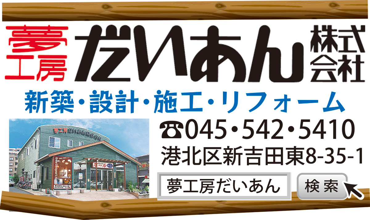 綱島・新吉田で創業57年目、「地域と共に生きる」をモットーに、住宅に関するあらゆる悩みを解決してきた地域の相談室。それが「夢工房だいあん」。地域密着だからこそできるきめ細かな対応で、長年地元の人から必要とされ続けている。