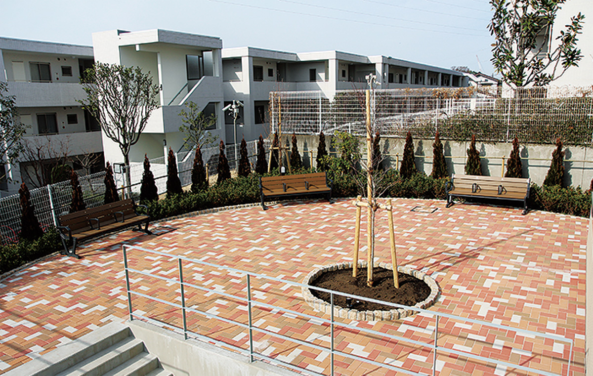 居室から富士山が望める眺望の施設。外観はスタイリッシュで、敷地内には庭園や円形グリーンパークがあり季節を感じられる散歩が楽しめる。
