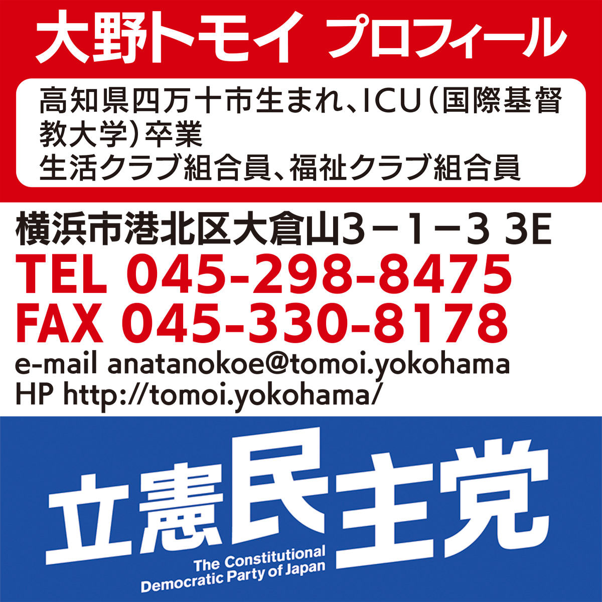 立憲民主党・横浜市政担当(港北区) 大野トモイ