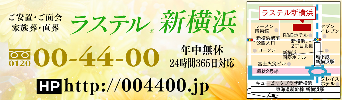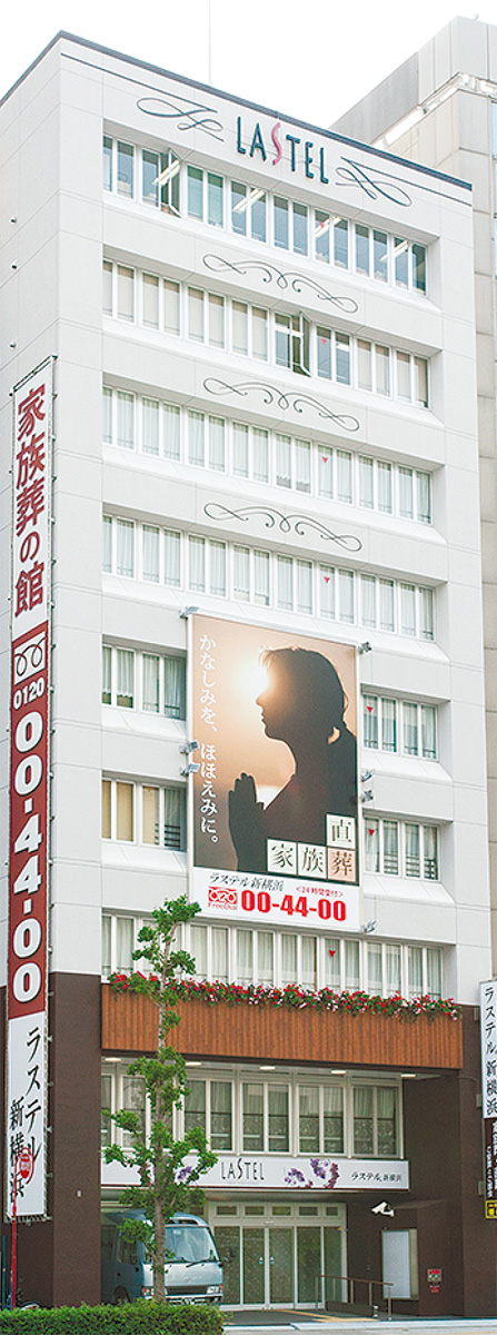 『(株)ニチリョク』運営、市営地下鉄・新横浜駅北口8番出口そばの好立地にある、家族葬専門式場として高い評価を得る「ラステル新横浜」。オープン7年目となる同施設では現在、家族葬事前相談会を毎日受付中だ。
