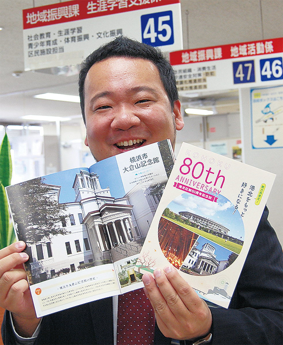 港北区役所広報相談係の小高博之さんは「区の新たな魅力を発見でき、港北をもっと好きになることまちがいなし。記念誌はデジタルブックで公開中です」とPRする。