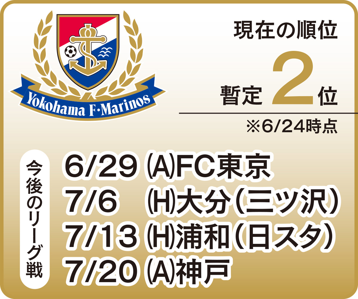 15年ぶりのリーグ優勝を目指す、サッカーJ1リーグ横浜F・マリノス。シーズンの折り返しを前に好位置につけている。