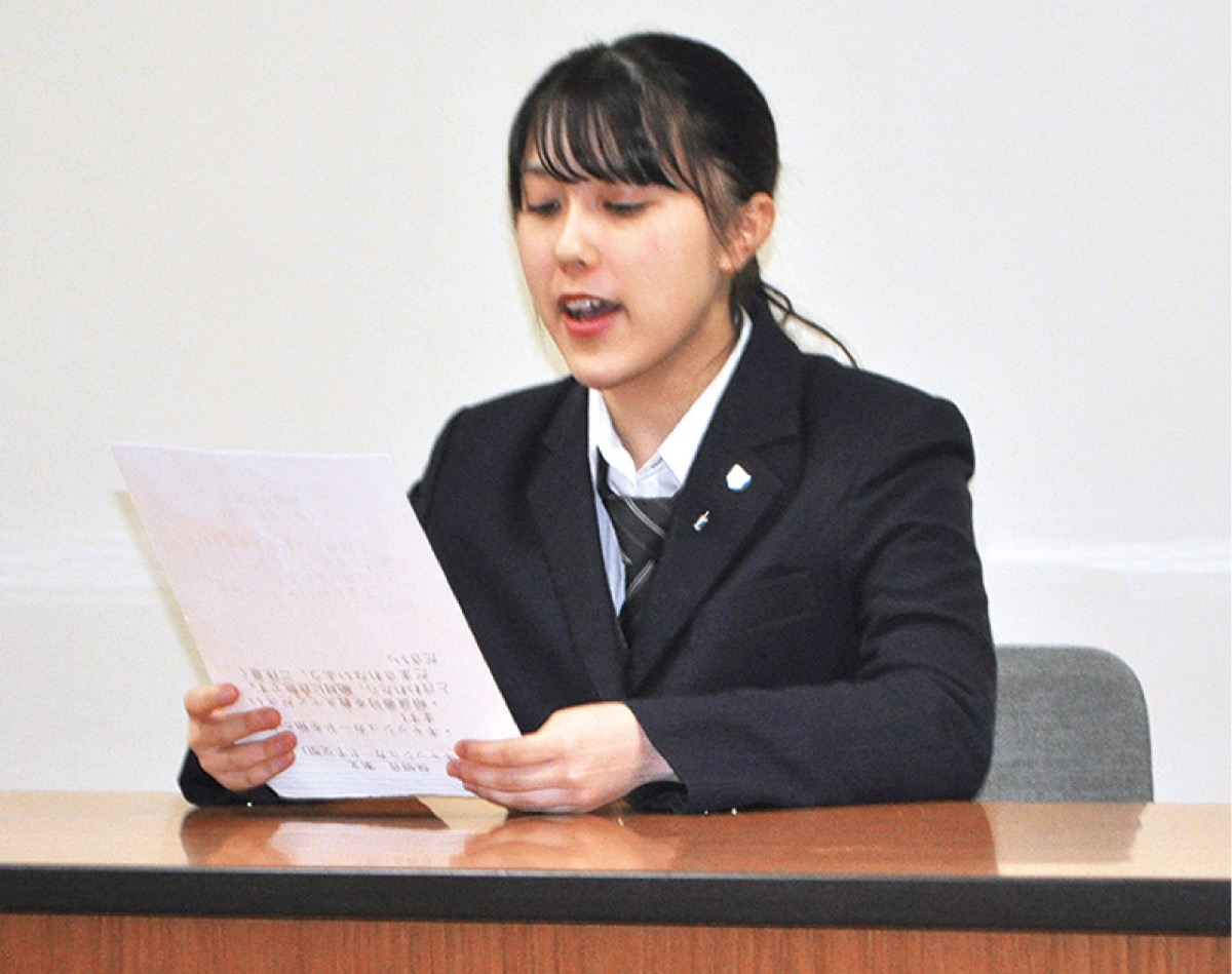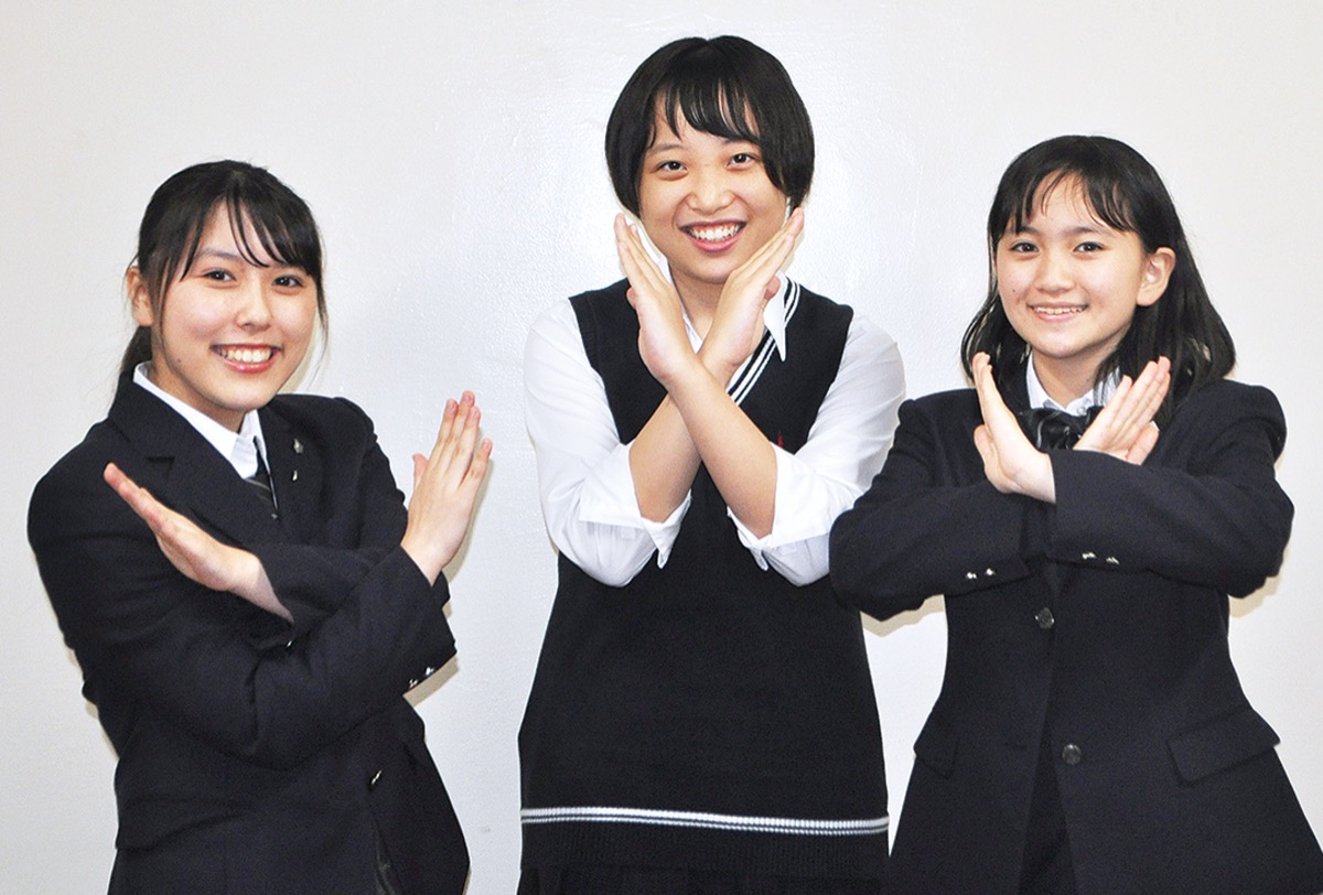 依頼を受けた際は一様に驚いたという部員ら。当日は、7人の部員から3人が選ばれ録音に臨んだ。藤代郁乃さん(2年)は「私でいいのかなと思ったが自分らしく伝えられた」と満足な表情を見せた。以前も区役所の宣伝カーに声の協力をしたことのある池田倫奈さん(2年)は「前回よりも成長した自分で臨めた」と振り返った。
