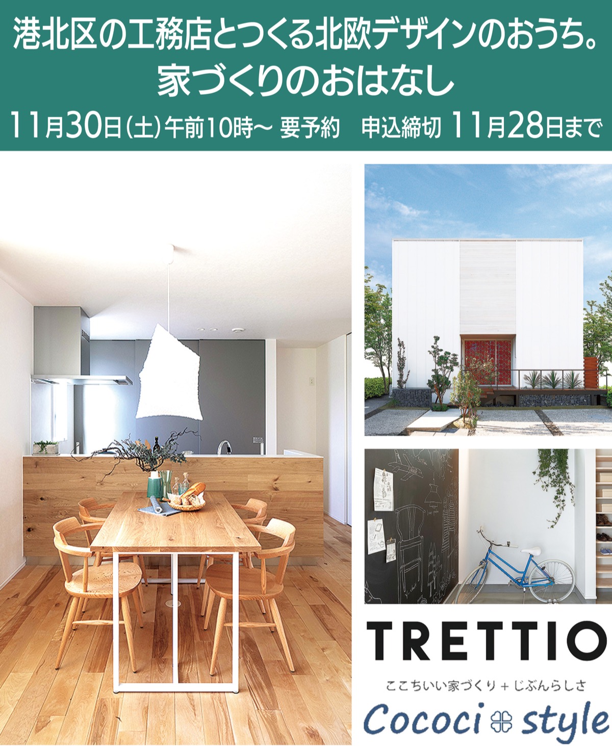 当日は、北欧風デザインを簡単にセンスよく家に取り入れられる「トレッティオのおうち」を紹介。これは同社が手掛ける高気密高断熱住宅「ココチスタイル」シリーズの一つ。規格住宅のため、始めから金額が明確なのが特長で問合せが急増しているとか。「北欧風がセンス良く決まるコツやインテリアの北欧風コーディネート術もお話します。気軽にご参加を」と担当者。申込は【電話】で。11月28日締切。