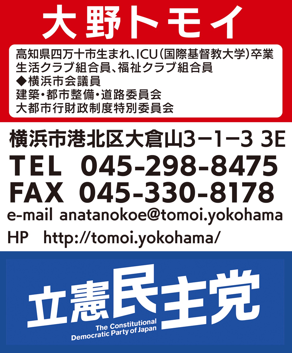 立憲・国民フォーラム横浜市会議員団 大野トモイ