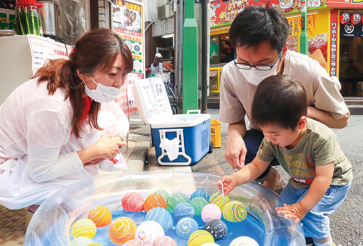 初日となった6月27日も、興味を持った親子連れがヨーヨーすくいに挑戦し、初夏の暑さの中で楽し気なひと時を過ごした。「密にしないため小規模なものなので、通りがかりに気軽に遊んでくれれば」と荒井さん。「お祭りは夏の風物詩。子どもたちが、楽しい夏の思い出をつくるきっかけになれば嬉しい」と笑顔を見せた。
