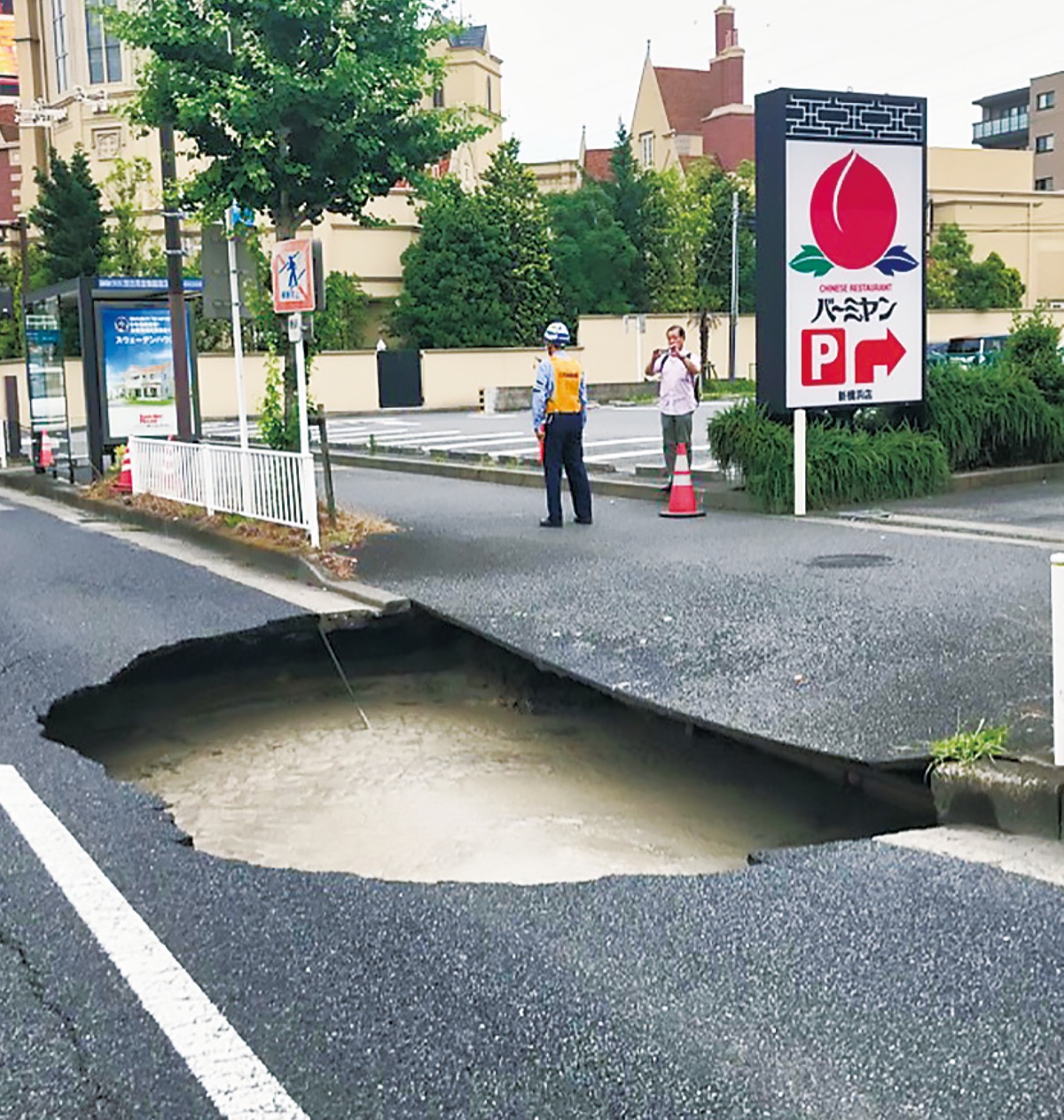 新横浜駅付近の市道環状2号線の道路上に6月30日、新たな陥没が確認された。同道路での陥没の発生は6月12日に続き2件目となった。陥没現場付近では、相鉄・東急直通線の「新横浜トンネル工事」が行われている。立て続けの陥没に不安が募る中、同工事を行う独立行政法人鉄道建設・運輸施設整備支援機構は「原因は現在調査中」としている。