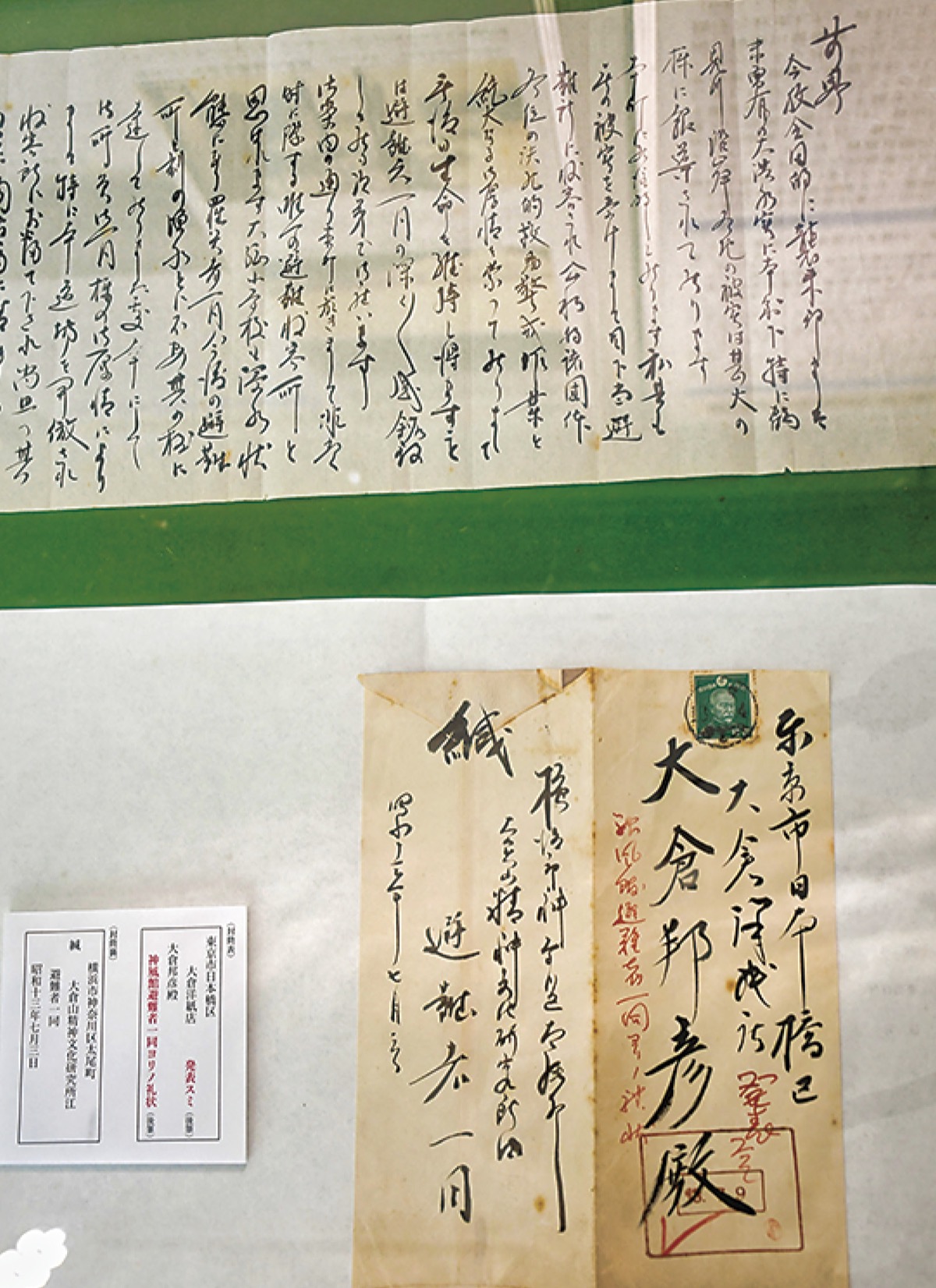 同館は地域防災にも積極的に貢献してきた。「1938年に起きた水害で大倉山一帯が浸水した際、記念館が90人以上の避難者を受け入れたことがある。その後創立者の大倉氏宛てに手紙が届いた」と平井理事長。展示には手紙の実物が設置されており、連名で避難者らから同館への感謝の意が記されている。