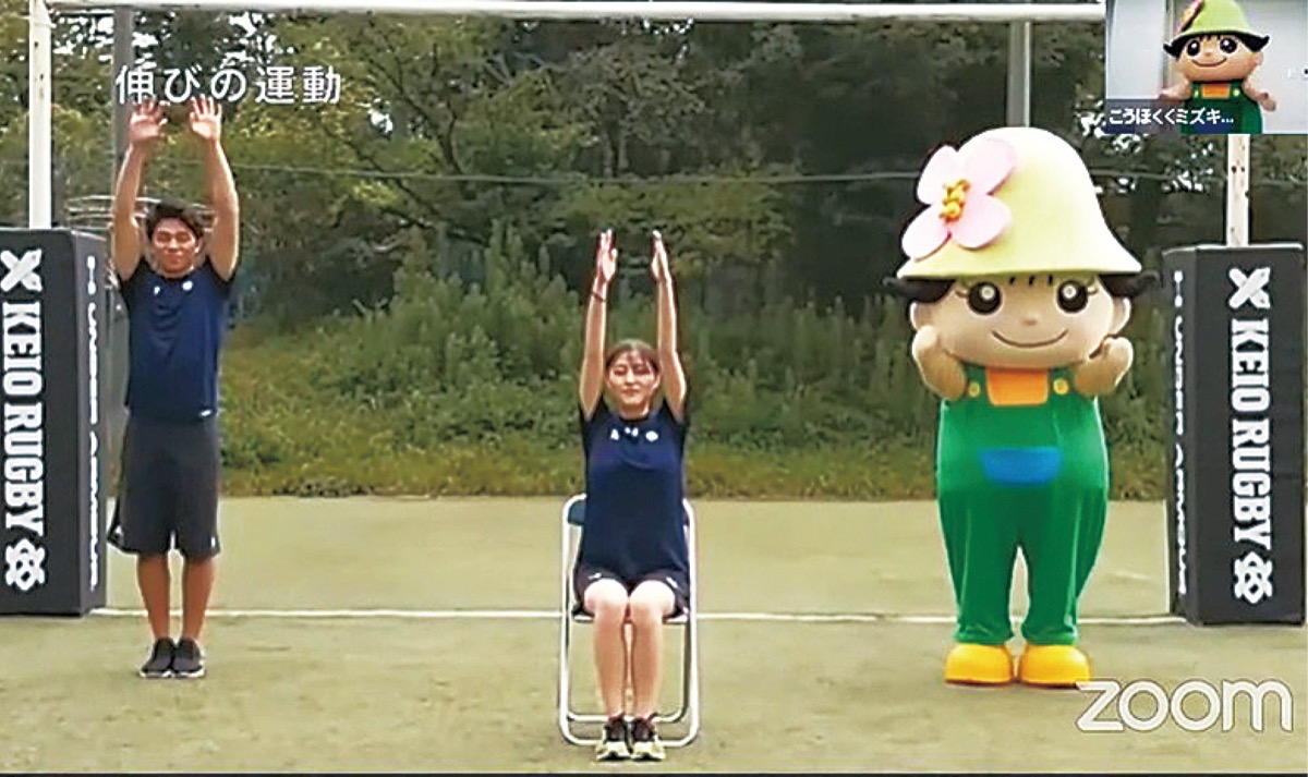 初日の8月3日は早朝6時30分から、小学生やその保護者ほか約300人がZoomなどを介して集合。慶応大ラグビー部部員のお手本を見ながら、ラジオ体操第一などで20分間汗を流した。