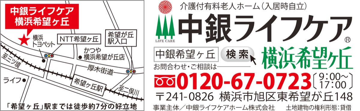 中銀ライフケア横浜希望ヶ丘は、昭和46年より中高齢者専門住宅事業を展開している”中銀”が母体の介護付有料老人ホーム(入居時自立)。