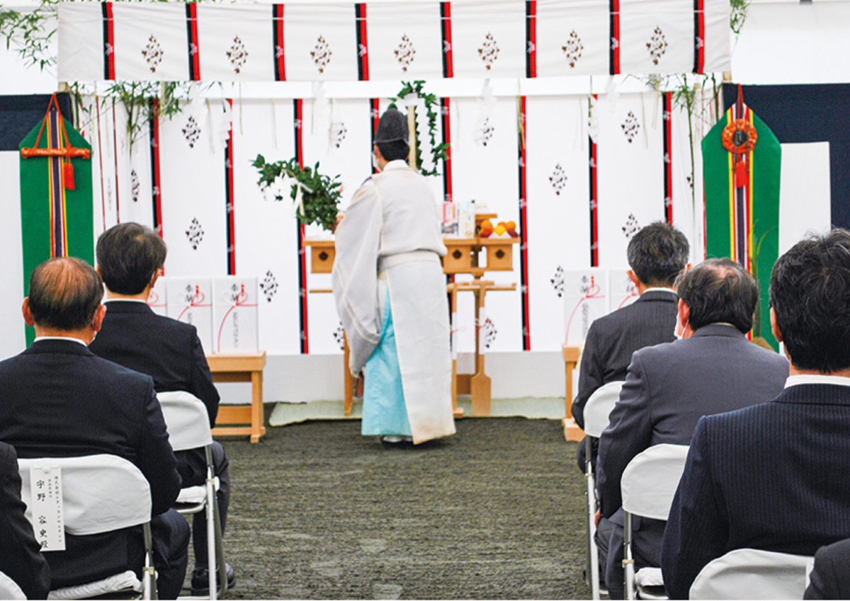 祈願祭では、コロナ禍への配慮から祝賀会はなく神事のみ執り行われ、同組合員および横浜市、施工会社である東急建設関係者ら約50人が出席した。