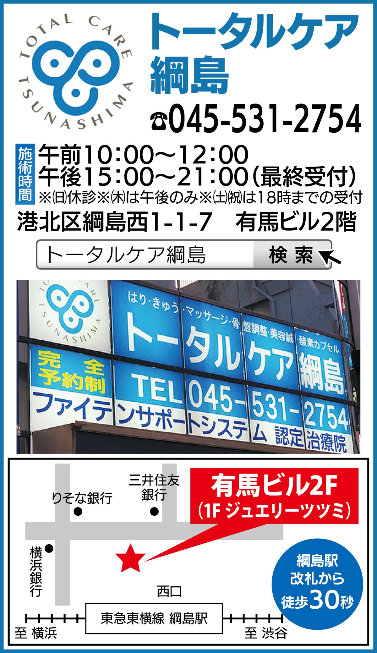 横浜市港北区綱島西1-1-7 有馬ビル2F