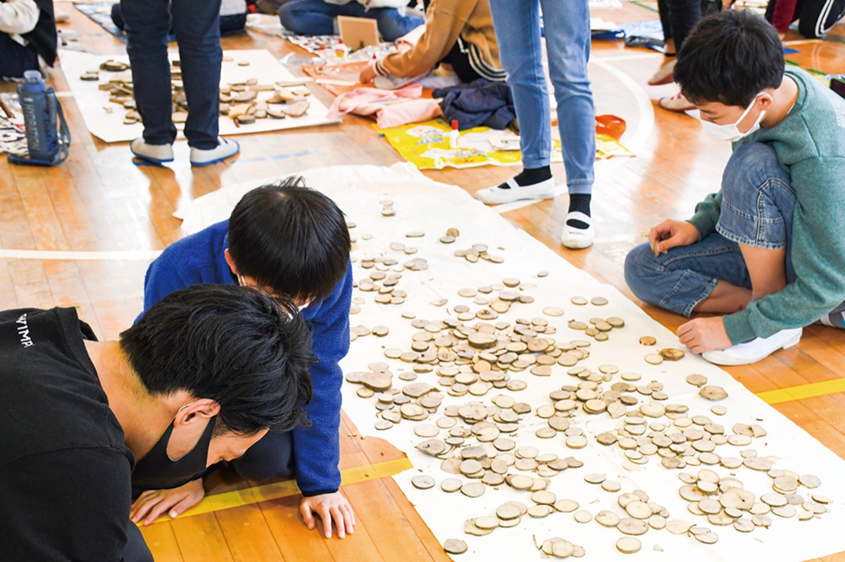 工作に使用した木材のチップは、同社の会長が育てている肉桂(ニッケイ)の木を50本ほど加工したもの。同社は以前、児童らが授業で使う木材を提供していた縁もあり、今回の打診もすぐに承諾したという。閏間社長は「子どもは可能性しかなく、地域の宝。皆の思い出作りの一端を担えていたら嬉しい」と語った。