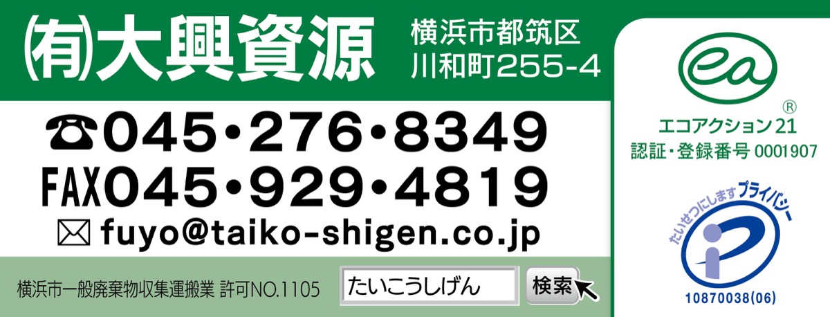 近年、違反・無許可の業者が高額請求や不法投棄をするなどして問題に。しかし同社は、自治体の許可はもちろんのこと、プライバシーマークやエコアクション21の認証を受けているので安心だ。「収集は見積りに納得いただいてから行います。お気軽にお問い合わせを」