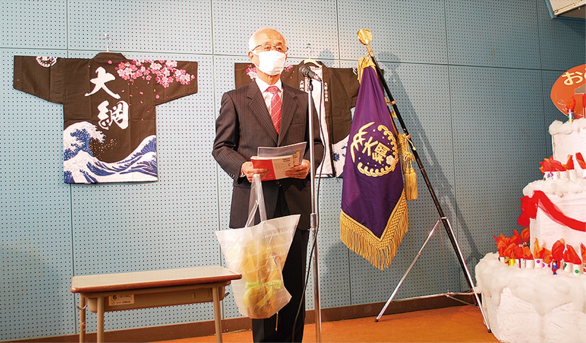 児童らの司会で集会は進行。特別ゲストの前田隆元校長は、歌人で教科書にも掲載されている唱歌「夏は来ぬ」を作詞した佐佐木信綱氏が、同校の校歌を作詞していることに触れ、「夏は来ぬ」の歌詞の「卯の花」を今回贈り物とする旨、あいさつした。栗山雄太同実行委員長は「緊急事態宣言で記念式典は中止となったが、テレビ集会ができてよかった。記念リーフレット、法被、紅白まんじゅう、横断幕等を記念品として準備した。喜んでも貰えれば嬉しい」、飯島勘太郎PTA会長は「今回の記念行事は中止、変更の連続。準備をしてきた児童たち、先生、地域の方に感謝を伝えたい」と語った。そのほか、児童らが企画した「大綱小クイズ」や120周年の歩みをたどる映像などを放送。高橋亨校長は「協力頂いた保護者の方、日頃からお世話になっている地域の方々を感染対策のため招待できなかったが、快く予定変更を受け入れて頂いた。感謝を伝えたい」と話していた。