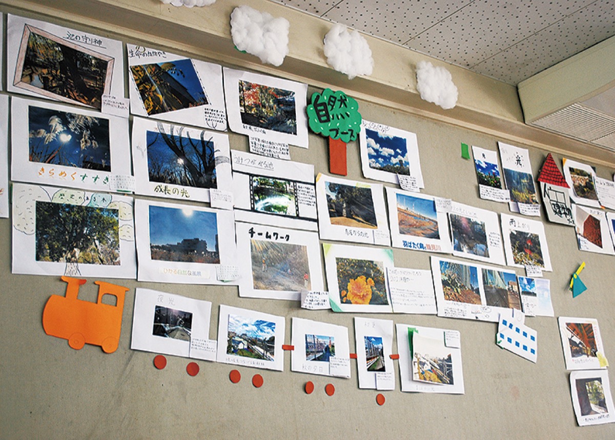 10月には会場を「トレッサ横浜」に定め、児童らが直接同施設にアポイントをとって、開催の目的や企画内容を伝え「教育活動への貢献として、無償で場所を貸していただけることになった」(中村教諭)。また写真の構図やタイトルのつけ方、展示の仕方については、学校行事撮影で契約しているプロカメラマンに授業内で複数回アドバイスを貰い、作品をブラッシュアップした。更に、写真展示以外にも、会場に飾る横断幕や立て看板、チラシやHP、展示しきれない作品のスライドショー動画も児童らが作成し、動画は会場で流す予定だ。実行委員リーダーの長澤立夏子(りかこ)さんは「写真を飾るのも、既成の額縁などは使わず、画用紙で手作りして工夫した。写真のタイトルや撮影者のコメントなども、デザインが得意な子が書いている。そんな細かなこだわりも見て貰えれば。写真展のタイトルにもある『光』にも注目してほしい」。