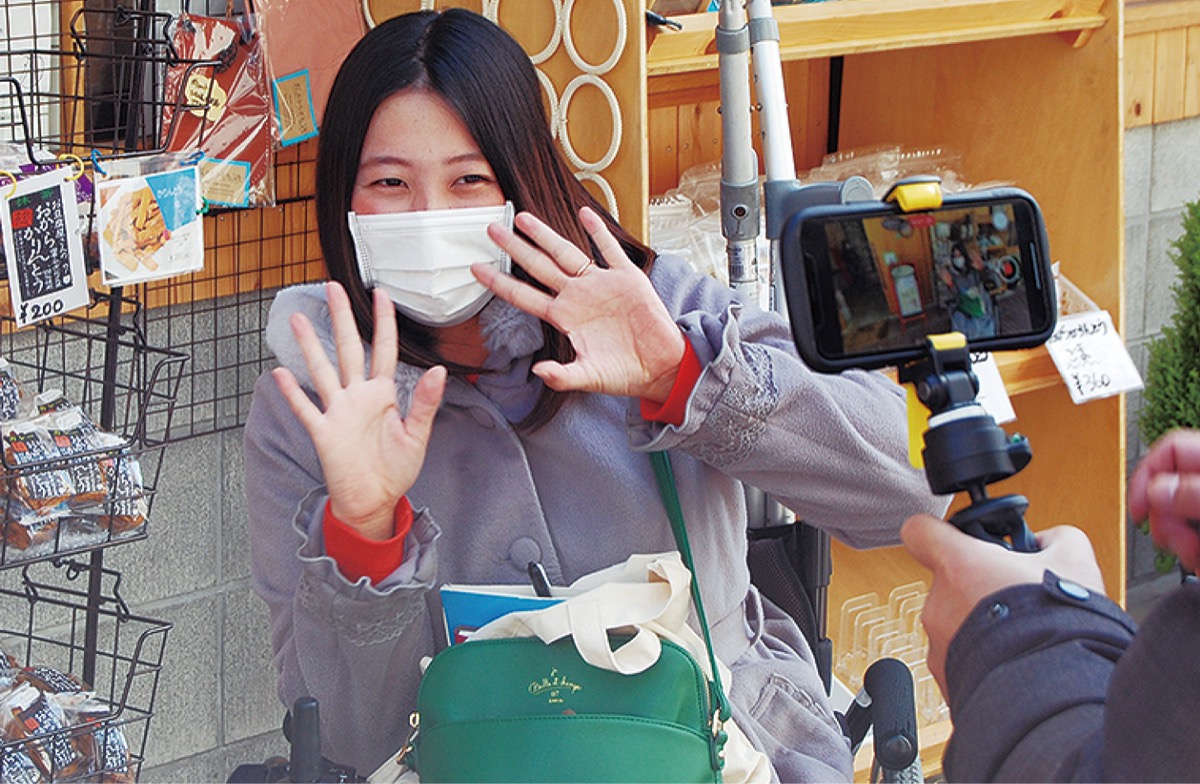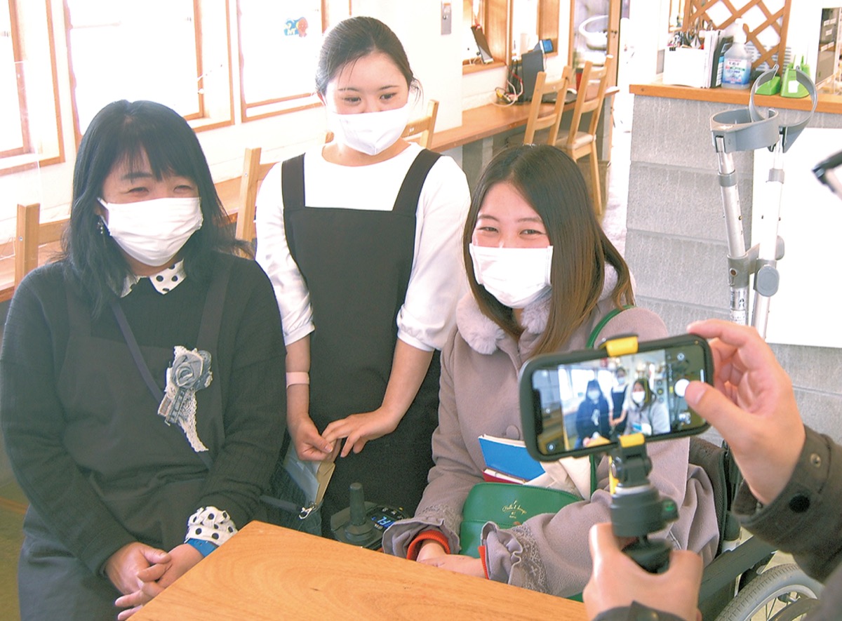 NPO法人フラットハート(青木恵美子理事長)が運営する障がいのある人の就労の場、カフェおからさん(篠原北1の2の24)で3月23日、ユーチューバーによる動画撮影が行われた。
