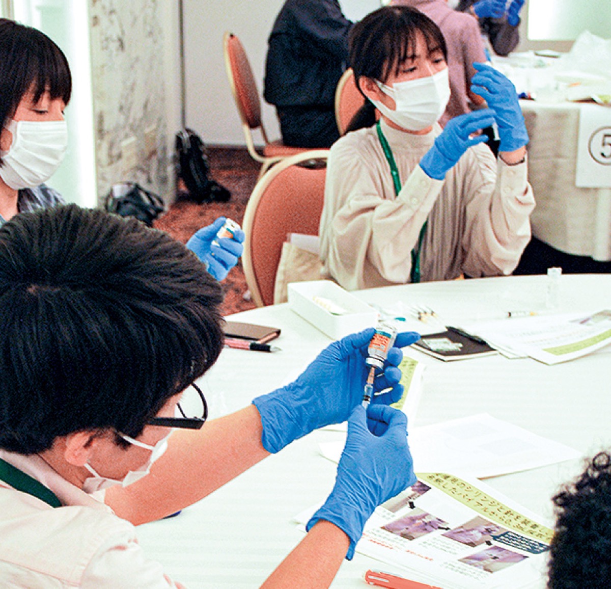 今回の集団接種で市は、港北区内では1日450人の接種を想定している。人数分のワクチンの薬液を希釈し、注射器(シリンジ)に小分けする作業を担うのが薬剤師だ。港北区薬剤師会では、会員に協力要請を行い、41人が18日の事前研修に参加した。同会の高木健司会長は「作業は1分で1本の計算。正確に、早く調製することを目指したい」とする。