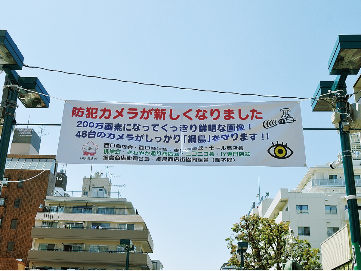 商店街内のカメラは2月に2台が増設され、以前から設置されていた46台のカメラも新しく交換。いずれも200万画素で以前より映像が鮮明に映るようになった。横断幕は綱島の7商店会とイトーヨーカドー専門店会が協力して防犯カメラを設置・維持していることを地域住民に知ってもらうとともに、カメラをアピールすることで犯罪の抑止にもつなげる狙いで設置。カメラの映像は県警等の事件調査にも使用されているという。