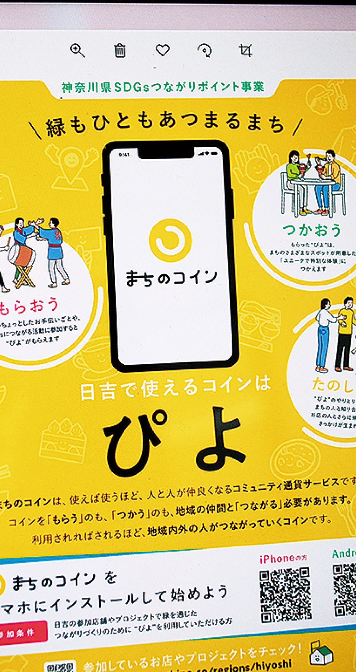 日吉地区の有志でつくる「HIYOSHI Green Action」(大嶋将聖委員長)では、アプリを使った「まちのコイン」事業を5月14日から始める。横浜市が推進し、同団体が助成対象となっている地域緑化計画の一環。神奈川県SDGsつながりポイント事業を活用している。