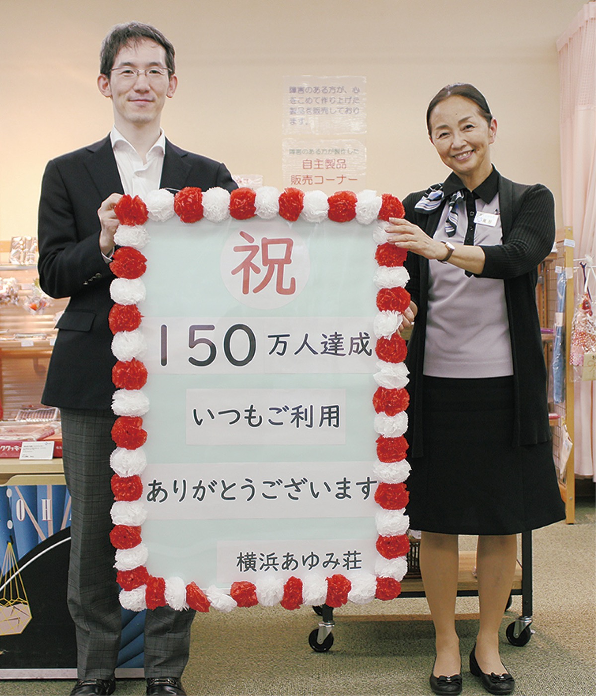 同施設は1984年11月に、障害のある人やその家族が宿泊できる保養施設として開所。公営施設は日本で数カ所のため県内はもちろん兵庫など遠方からの利用もあるという。研修室や体育館もあり、特別支援学級の宿泊研修などにも活用され、昨年12月に宿泊部門と研修部門の総利用者が150万人を達成した。
