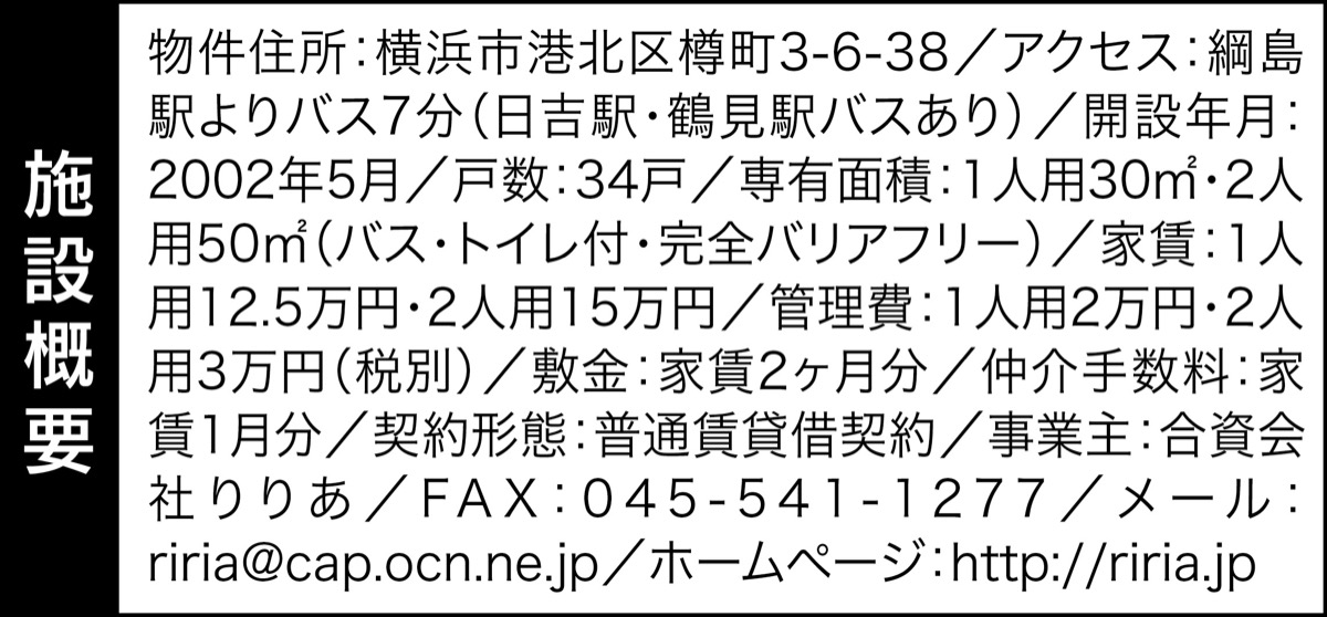 現在若干の空室があり、WEB上でQRコードから施設内の見学もできる。実際の施設の内覧希望者は【電話】045・541・1233まで申し込みを(平日午前9時〜午後6時)。