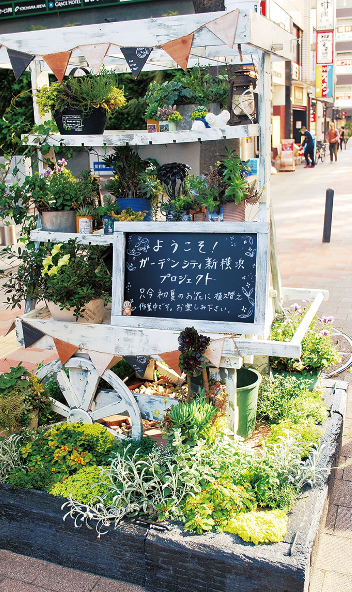 新横浜地区では今、街中に花と緑の充実が広がっている。これは東京五輪等も見据え、横浜市が今年度の新横浜地区緑化育成業務委託として実施しているもの。同地区では、市の「地域緑のまちづくり事業」の一環として、新横浜町内会美化環境部のガーデンシティ新横浜プロジェクトも並行して行われており、協力しながら緑化活動が行われている。F・マリノス通りには、新横浜駅に一番近い花壇にワゴン=写真=が設置されるなど、色とりどりの草花が人々の目を引いている。