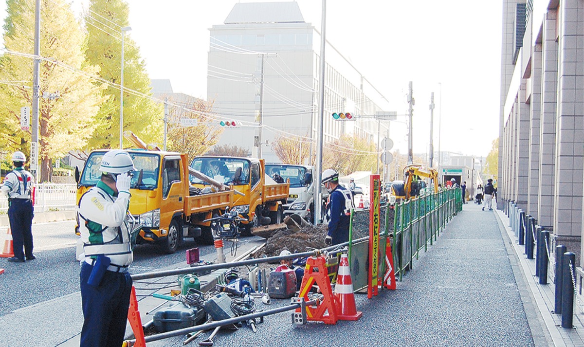 日吉駅東口で11月15日、タクシー乗場新設の工事が始まった。新たな乗場設置は、歩行者らの通行阻害などが指摘されていた西口の乗場周辺の課題に対応する措置。工事は年度内の完成を目指して進められており、運用開始とともに現在の西口の乗場は廃止される。