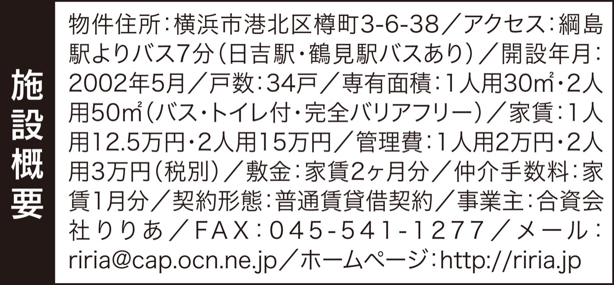 現在若干の空室があり、WEB上で二次元コードから施設内の見学もできる。実際の施設の内覧希望者は【電話】045・541・1233まで申し込みを(平日午前9時〜午後6時)。