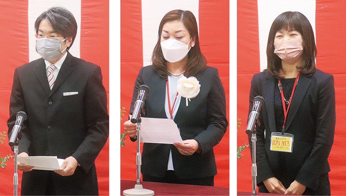 式典内ではそんな児童たちの取り組みが動画で紹介された。その様子を見守った平田さんと飯嶌さんは「前向きに一生懸命な思いが伝わってきた。学年を超えた交流が生まれ、みんなで協力しあう姿には、まさしく(学校教育目標の)”こころゆたかな菊名の子”が現れていた」と笑顔で振り返った。