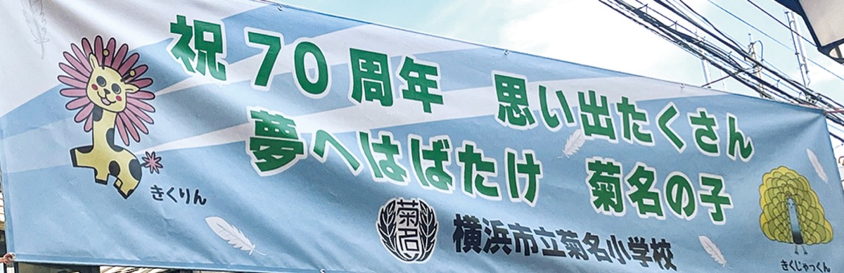 スローガンは4年生が中心となり「楽しい思い出をもって前を向こう」という思いを込めて設定。菊名駅前には記念の横断幕も掲出された。