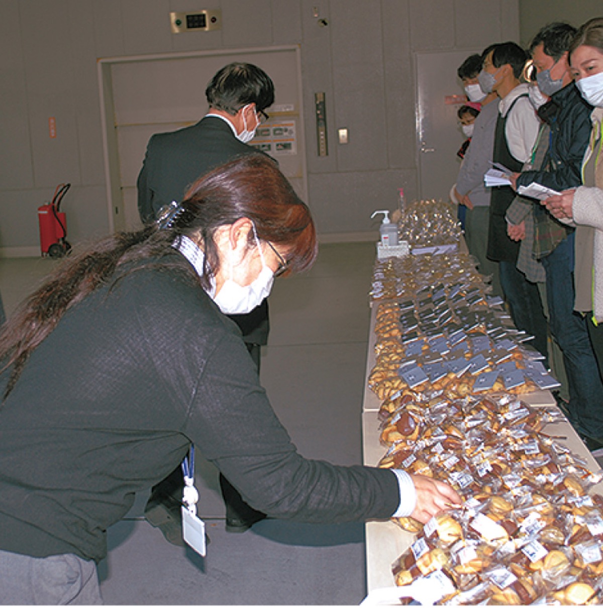 さらに、同社が同じく社会貢献活動として市内の福祉施設から購入した1000人分の手作り焼き菓子を清掃活動の参加社員に配布した。これは同社で年数回実施されていた福祉施設製品の社内販売がコロナ禍で難しくなっていることを受け、企画されたもの。各施設と同社の橋渡しをした、横浜市健康福祉局障害福祉保健部の新井宏太郎さんは「福祉の作業所もコロナの影響を受けている。このような取組みは大変ありがたく、他になかなかない事例」と感謝の言葉を述べていた。