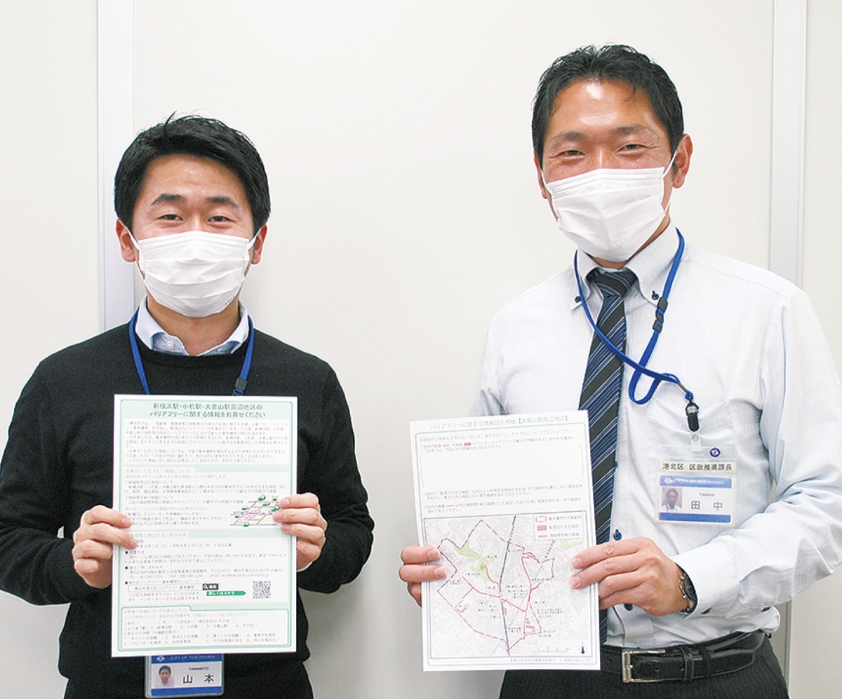 現在意見を募集しているのは、新横浜駅・小机駅・大倉山駅と駅から概ね半径500m範囲内で、よく利用する主な施設(官公庁・病院・福祉施設・大規模商業施設など)のバリアフリーの観点での問題点や課題。前記の施設を結ぶ経路上での問題点も同時に募集している。例えば「駅構内に多機能トイレがない」「施設の出入り口の段差が危険」など。届いた意見も踏まえ、5月に同部会で「まちあるき点検・ワークショップ」を行う予定だ。