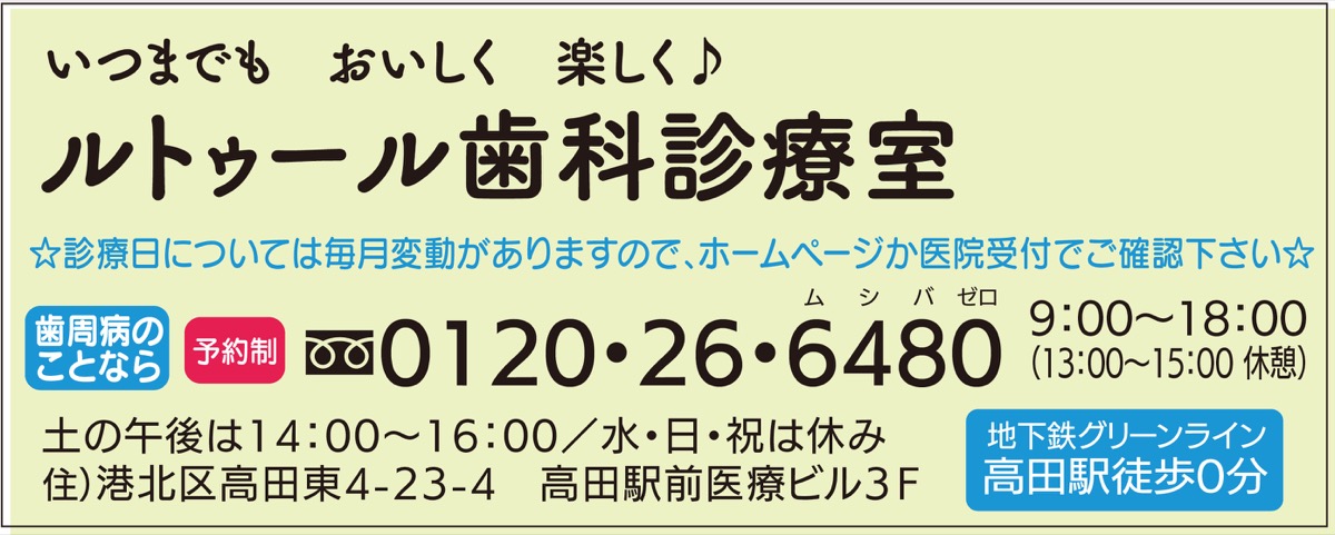 今年開院12年目を迎えた、ルトゥール歯科診療室。よりよい治療法を取り入れてきた同院が一昨年に導入したのが、プラズマレーザー。高出力レーザーと特殊な酸化チタン溶液により「むし歯や歯周病、歯の強化など様々な治療を麻酔なしで従来より痛みも少なく行える先進機器です。麻酔や削る音が苦手な方は一度相談を」。
