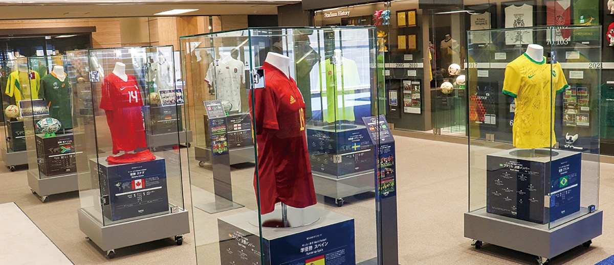 横浜国際総合競技場(日産スタジアム)はこのほど、世界大会の記念品等を見学できる展示施設を新調。3月末にメディア向け内覧会が行われた。