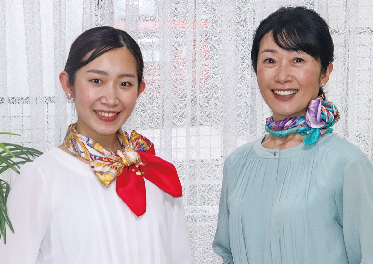 マユ子さんは管理栄養士としても活動しており、「将来は、私が医師で、母が食事面をサポートする医院を開きたい。そこでスカーフの魅力も発信できたら嬉しい」と瞳を輝かせた。